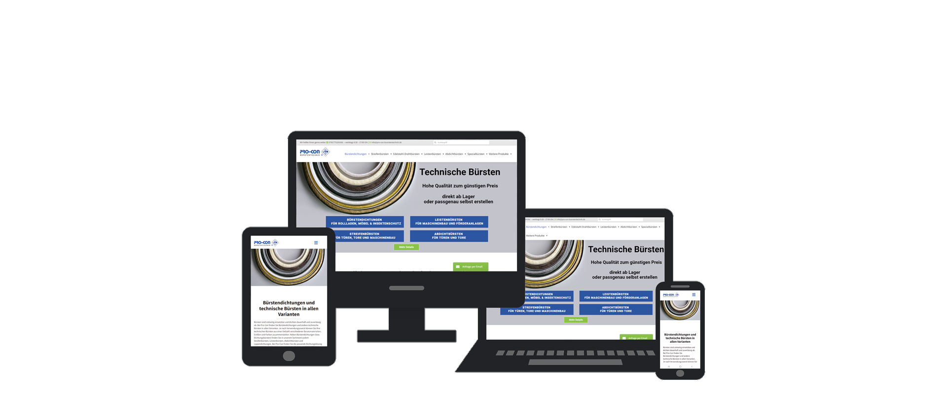 Produktseite der Pro-Con Bürstentechnik GmbH- Das Unternehmen benötigt eine Website mit Informationen, Anwendungsbeispielen und Möglichkeiten zur Bestellung der verschiedenen Produkte in verschiedenen Ausführungen nach Maß. Die Produkte sollen über die Google Suche gefunden werden.